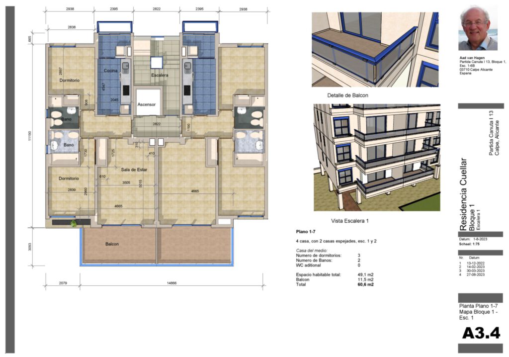 Een mooie woning vind ik 8B van Bloque 1. Een grotere woonkamer en keuken, meerdere kamers en een groot centraal balkon. Op tekening A3.06 is deze woning uitgewerkt.