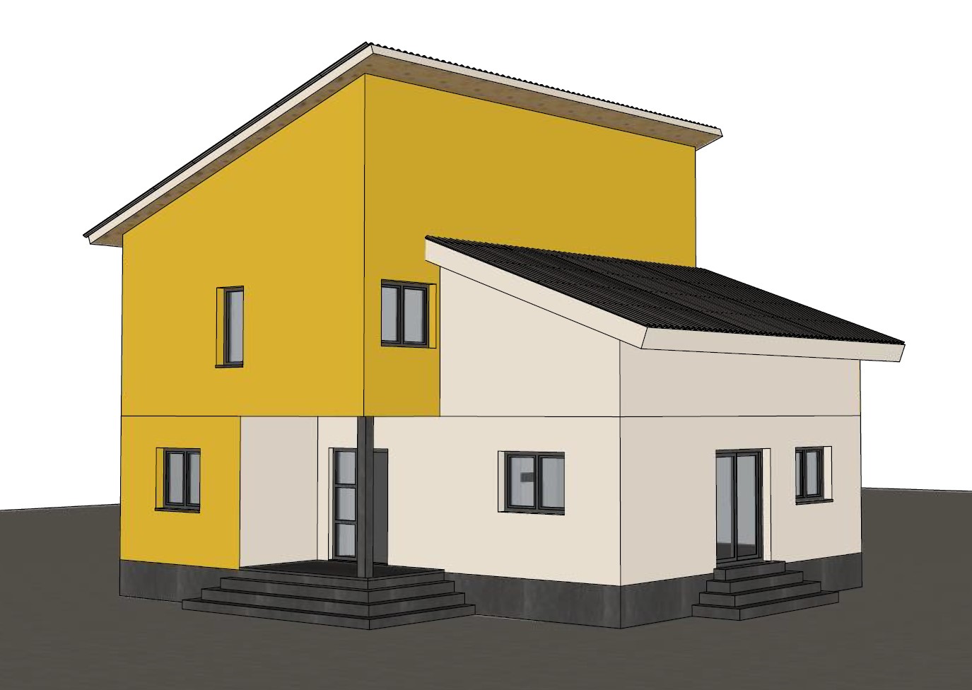 De kozijnen hebben een overeenkomstige donkere kleur.